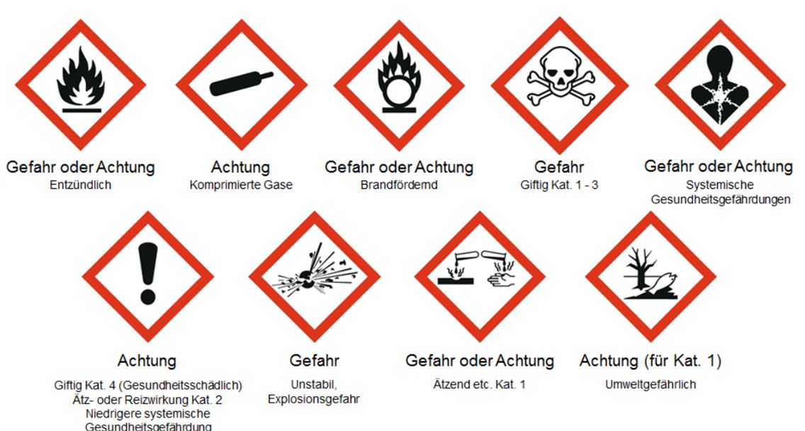 Sie zeigen auf einen Blick, welche Gefahren von einem Stoff ausgehen, und sind ein zentraler Bestandteil der Sicherheitsdatenblätter (SDB) nach REACH- und CLP-Verordnung.