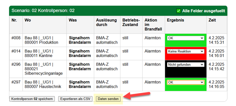 - Es erscheinen nun alle Kontrollpunkte der entsprechenden Kontrollperson zu diesem Scenario.